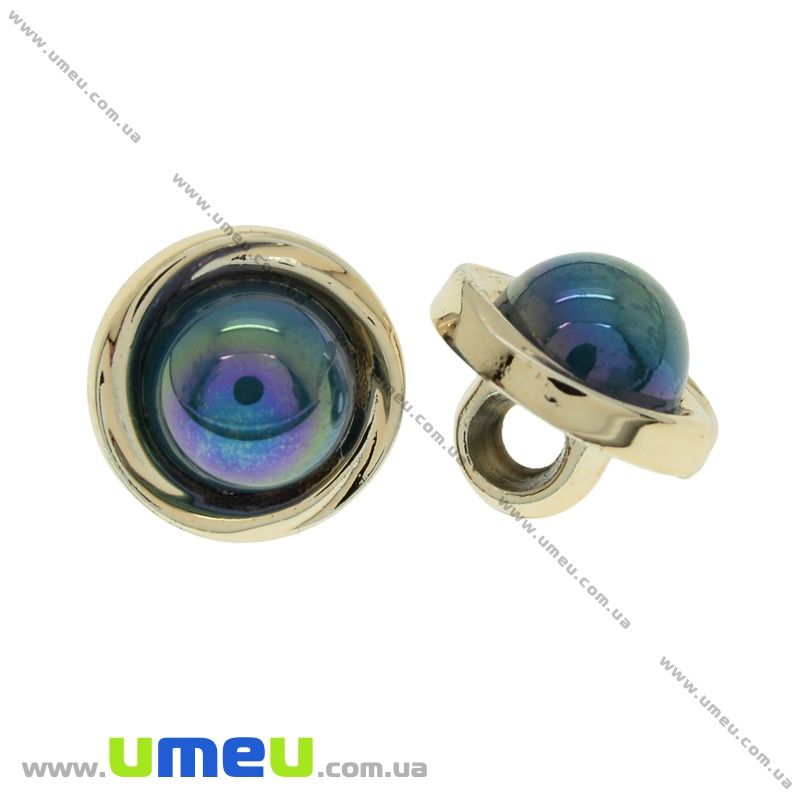 Пуговица пластиковая на ножке с полубусиной, 12 мм, Бирюзовая, Светлое золото (PUG-021476) / 1 шт
