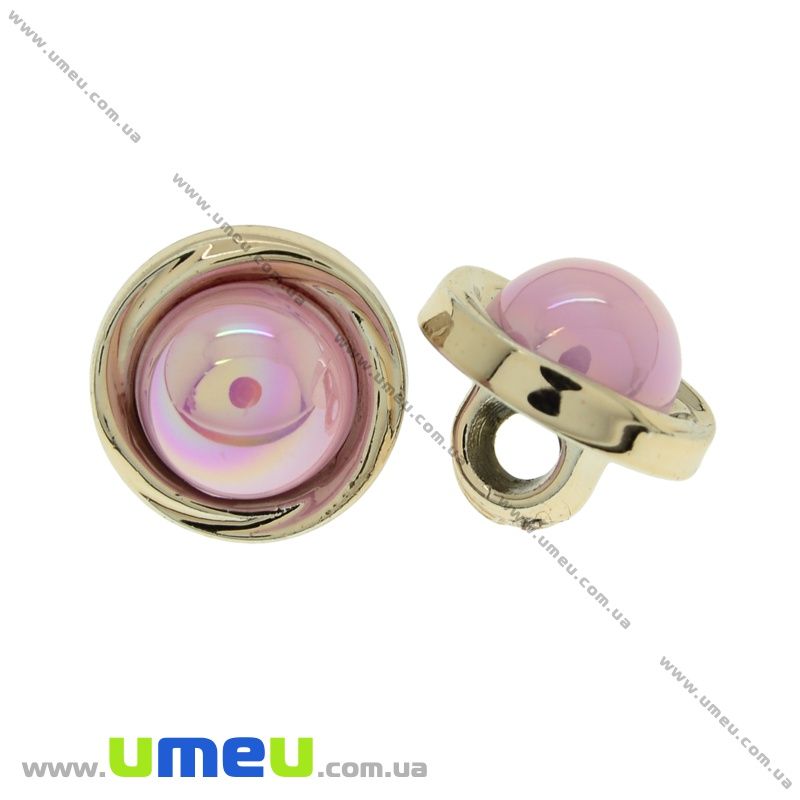 Пуговица пластиковая на ножке с полубусиной, 12 мм, Розовая, Светлое золото (PUG-021481) / 1 шт