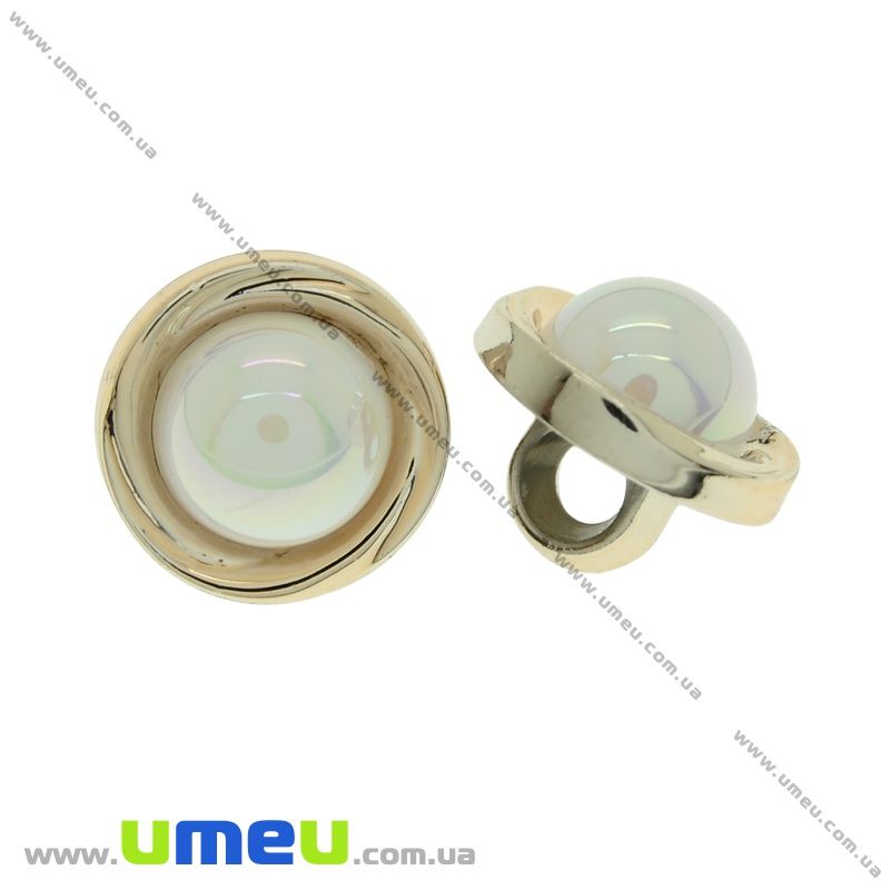 Пуговица пластиковая на ножке с полубусиной, 12 мм, Белая, Светлое золото (PUG-021483) / 1 шт