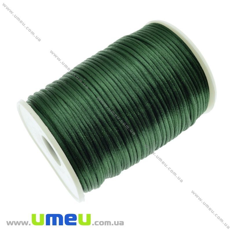 Атласный нейлоновый шнур, 2 мм, Зеленый темный (LEN-021727) / 1 м