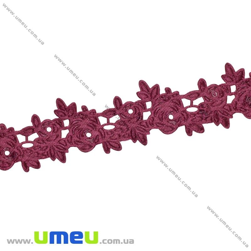 Тесьма тисненая Розочки, 20 мм, Бордовая (LEN-025659) / 1 м