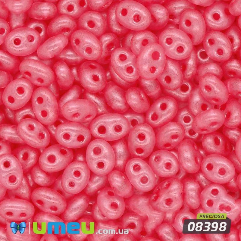 Бисер чешский Twin (Твин) №08398, 2,5х5 мм, Малиновый полупрозрачный перламутровый (BIS-026280) / 1 уп (5 г)