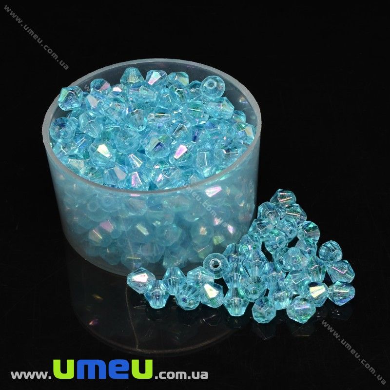 Бусина акриловая Биконус, 6х6 мм, Голубая АВ (BUS-028817) / 1 уп (5 г)