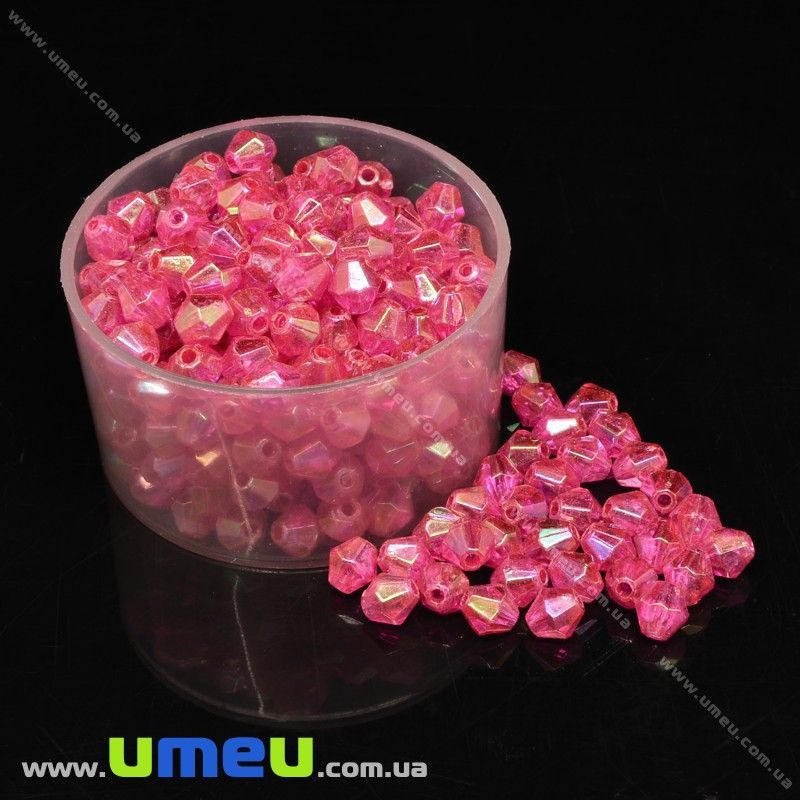 Бусины акриловые Биконусы, 6х6 мм, Малиновые АВ (BUS-028819) / 1 уп (5 г)