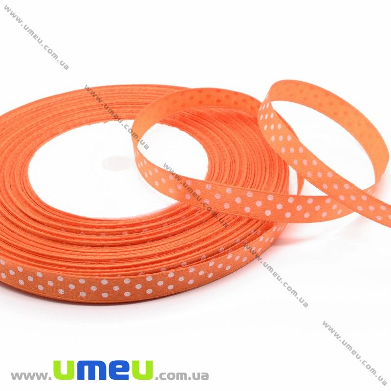 Атласная лента в горошек, 10 мм, Оранжевая (LEN-029800) / 1 м