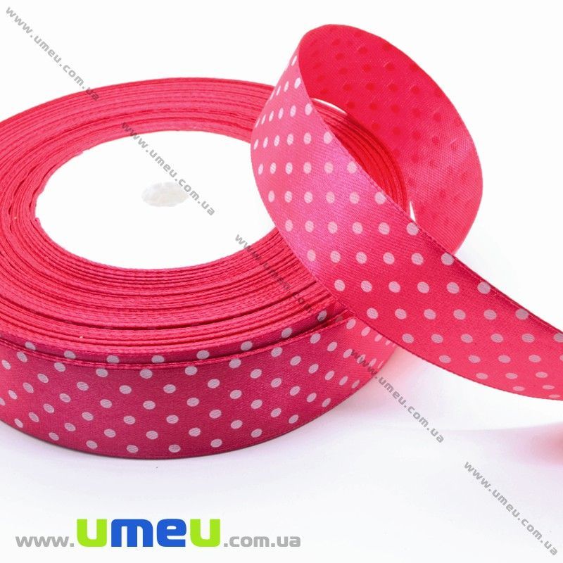 Атласная лента в горошек, 25 мм, Малиновая (LEN-029825) / 1 м