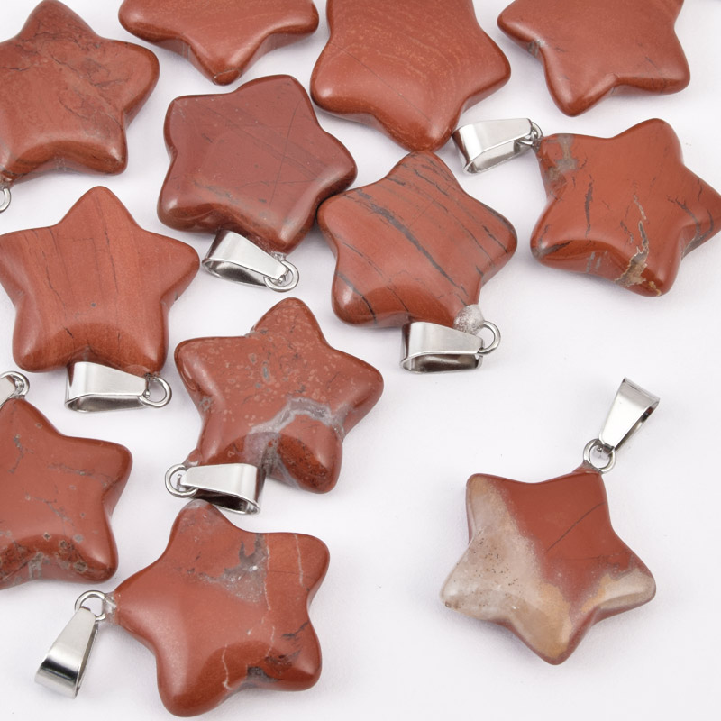 Подвеска Звезда, Натур. камень Яшма красная, 23х20 мм (POD-031865) / 1 шт