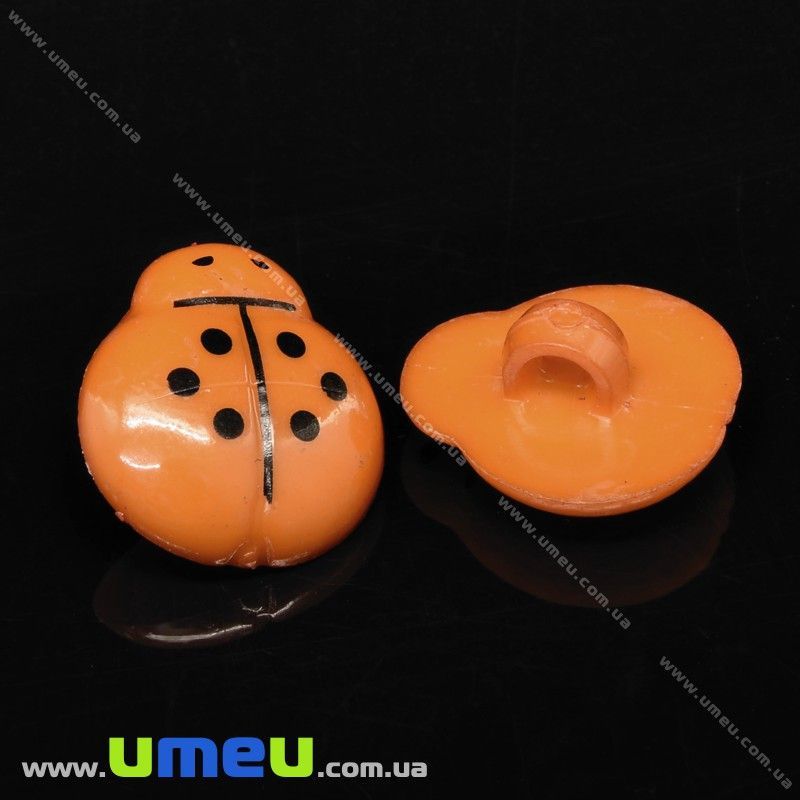 Пуговица пластиковая на ножке Божья Коровка, 14х13 мм, Оранжевая (PUG-032810) /
