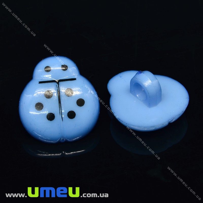 Пуговица пластиковая на ножке Божья Коровка, 14х13 мм, Голубая (PUG-032815) /
