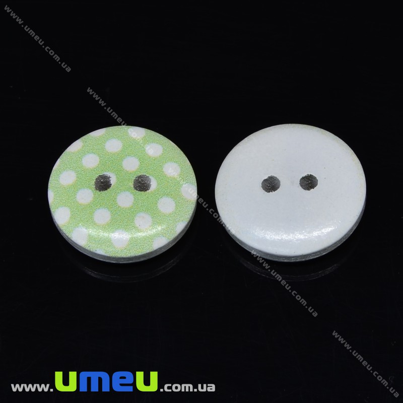 Пуговица деревянная Круглая в горошек, 15 мм, Салатовая (PUG-032912) /