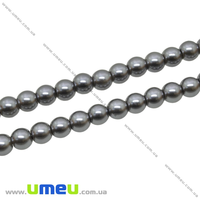 Бусины стеклянные Жемчуг Premium, 6 мм, Серые, Круглые (BUS-034114) / 1 низка