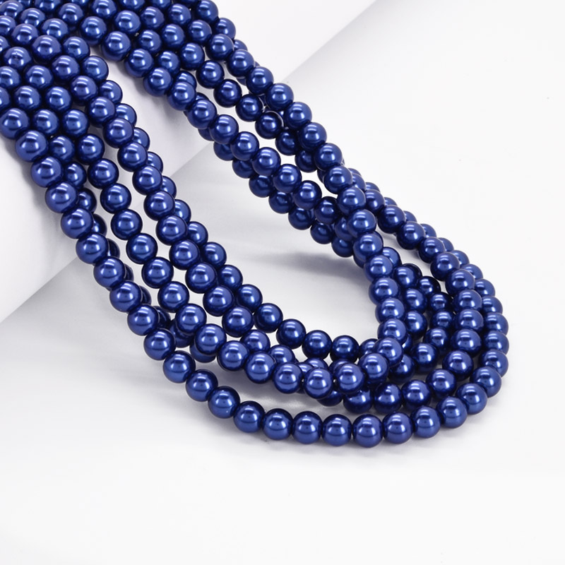 Бусины стеклянные Жемчуг Premium, 6 мм, Синие, Круглые (BUS-034126) / 1 низка