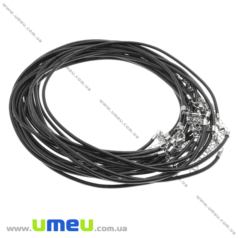 Основа для колье кожаная с замком из нерж. стали, Черная, 47 см, 3 мм (OSN-034669) / 1 шт