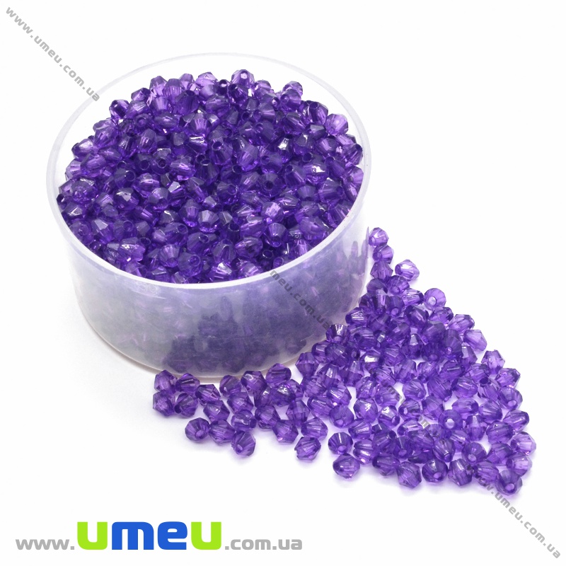 Бусина акриловая Биконус, 4х4 мм, Фиолетовая (BUS-035051) / 1 уп (5 г)