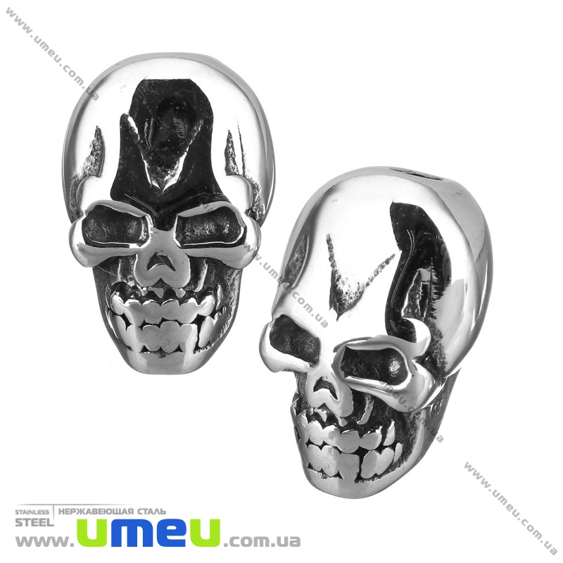 Бусина из нержавеющей стали Череп, 13х8,5х7 мм, Темное серебро (STL-036517) / 1 шт