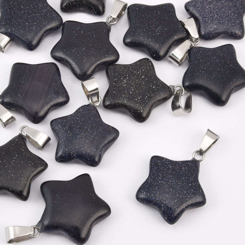 Подвеска Звезда, Синт. камень Авантюрин Золотой песок синий, 23х20 мм (POD-037485) / 1 шт