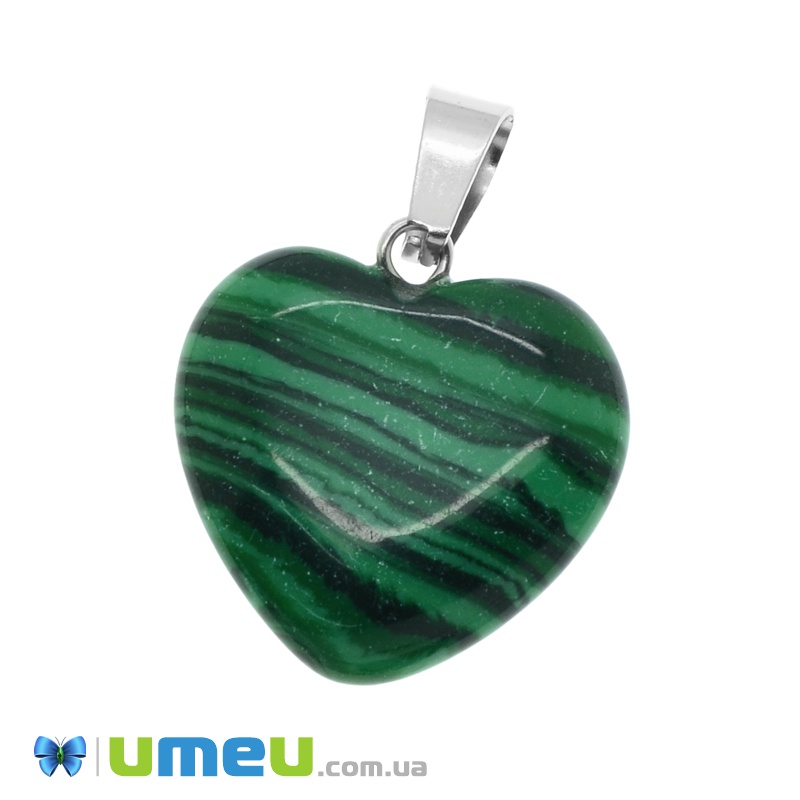 Подвеска Сердце из натурального камня, Малахит (синт.), 28х20 мм (POD-037521) / 1 шт
