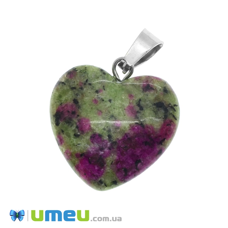 Подвеска Сердце из натурального камня, Рубин в цоизите, 28х20 мм (POD-037523) / 1 шт