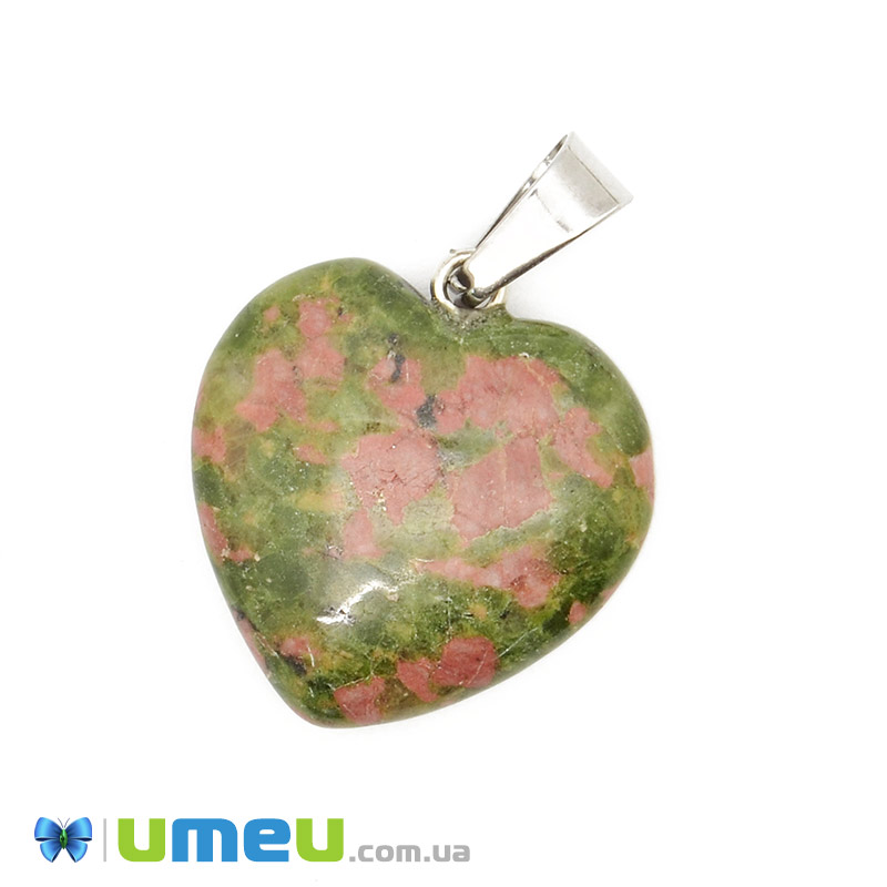 Подвеска Сердце из натурального камня, Унакит, 28х20 мм (POD-037528) / 1 шт