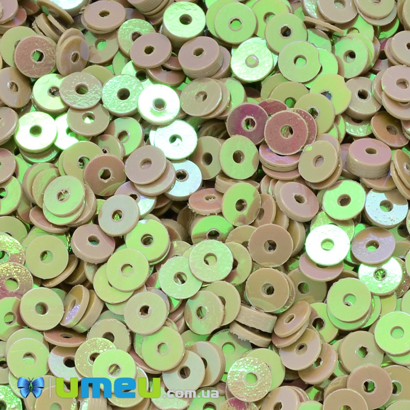 Пайетки Индия круглые плоские, 4 мм, Бежевые АВ (PAI-037555) / 1 уп (5 г)