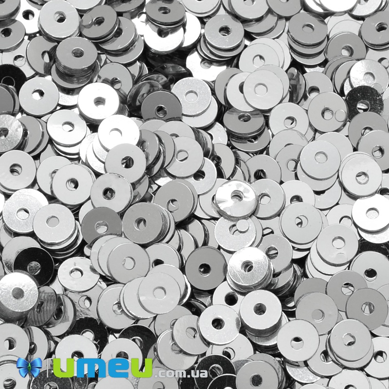 Пайетки Индия круглые плоские, 4 мм, Серебристые (PAI-037565) / 1 уп (5 г)