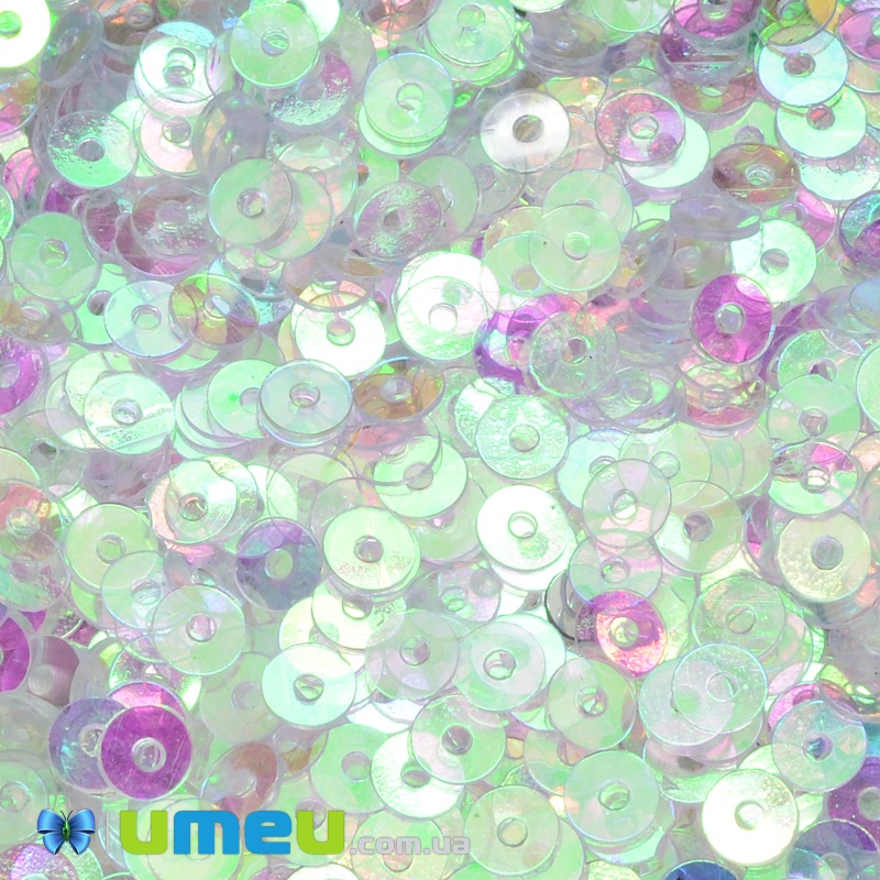Пайетки Индия круглые плоские, 4 мм, Прозрачные АВ (PAI-037580) / 1 уп (5 г)