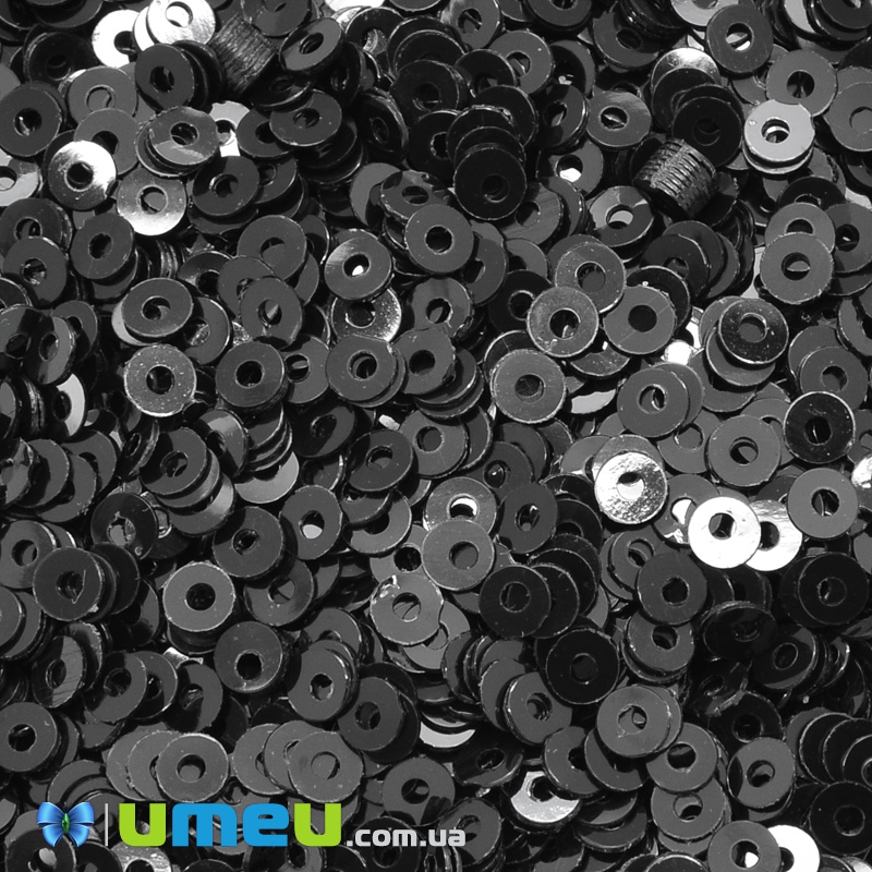Пайетки Индия круглые плоские, 3 мм, Черные (PAI-037583) / 1 уп (5 г)