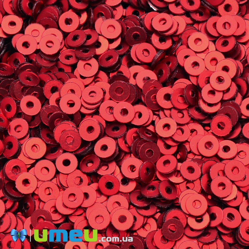 Пайетки Индия круглые плоские, 3 мм, Красные (PAI-037589) / 1 уп (5 г)