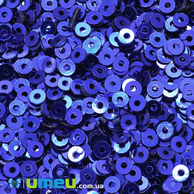 Пайетки Индия круглые плоские, 3 мм, Синие (PAI-037591) / 1 уп (5 г)