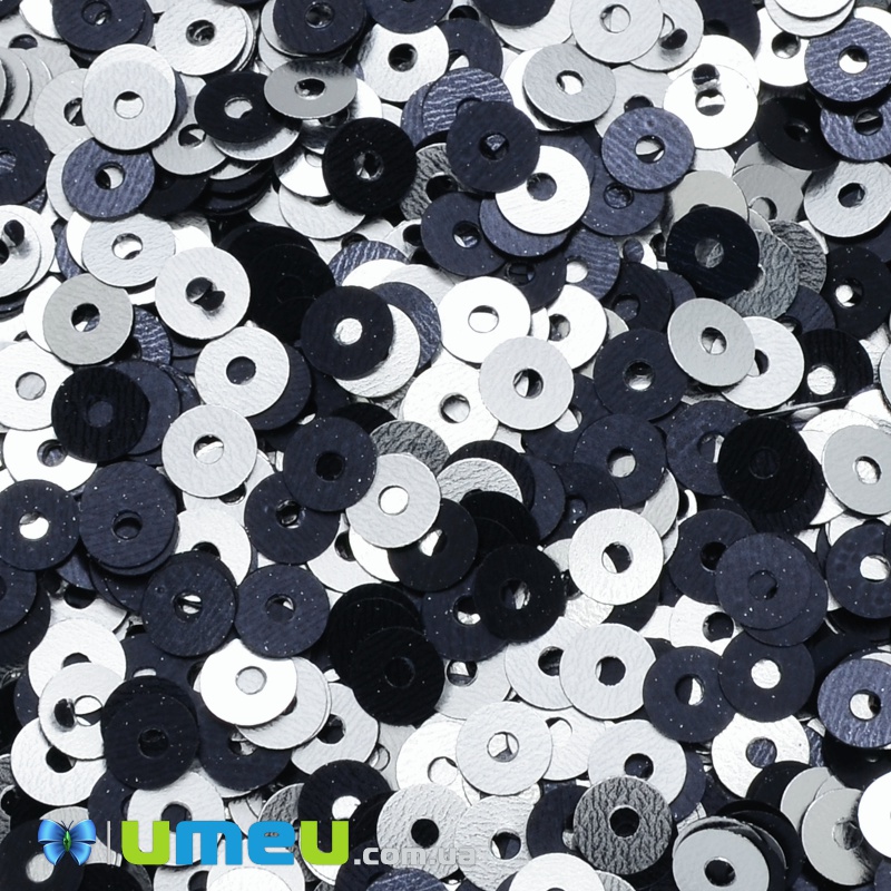 Пайетки Индия круглые плоские, 4 мм, Серебристо-черные (PAI-037622) /