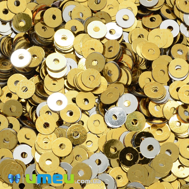Пайетки Индия круглые плоские, 4 мм, Золотисто-серебристые (PAI-037624) /