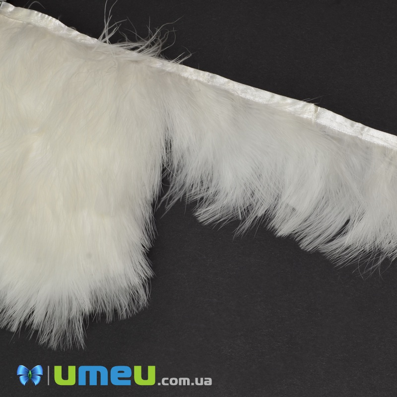 Перья индейки пушистые на ленте, 6-8 см, Белые (PER-038956) / 1 м