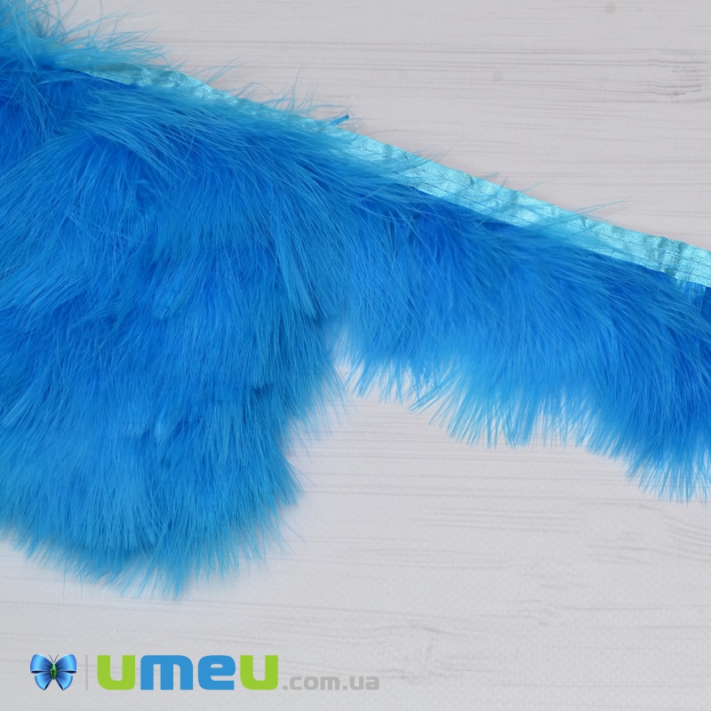 Перья индейки пушистые на ленте, 6-8 см, Синие (PER-038958) / 1 м