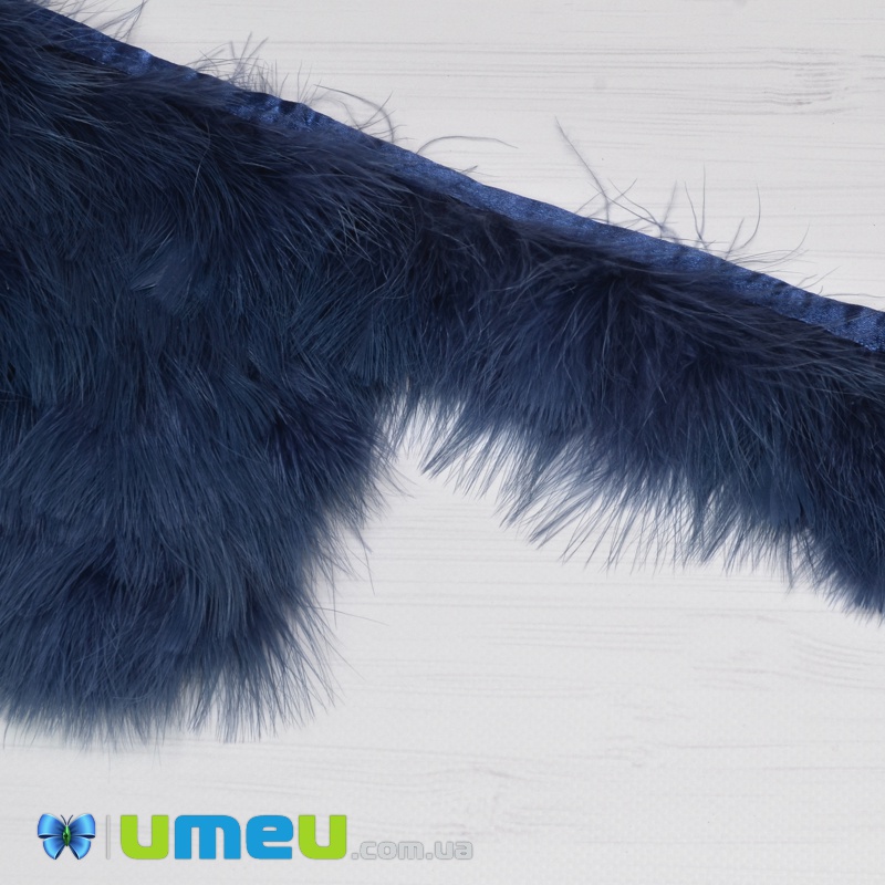 Перья индейки пушистые на ленте, 6-8 см, Синие темные (PER-038967) / 1 м