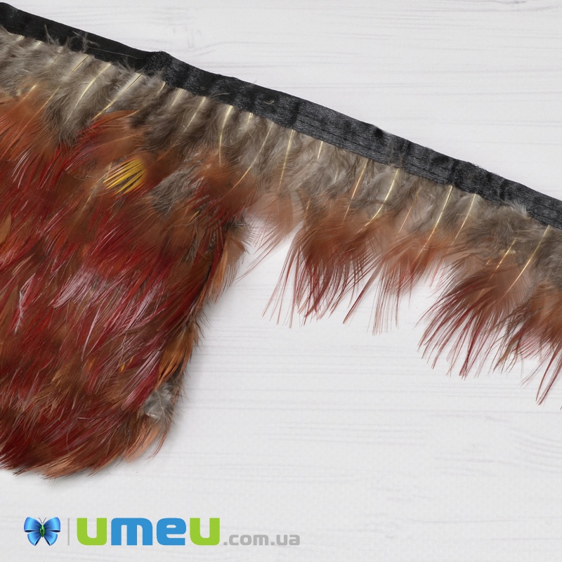Перья фазана на ленте, 5-7 см, Красные натуральные (PER-038981) / 1 м