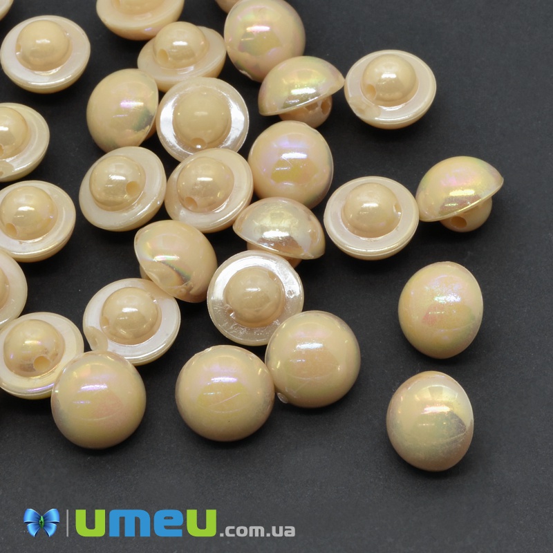 Пуговица пластиковая на ножке Круглая перламутровая, 10 мм, Кремовая АВ (PUG-039021) /