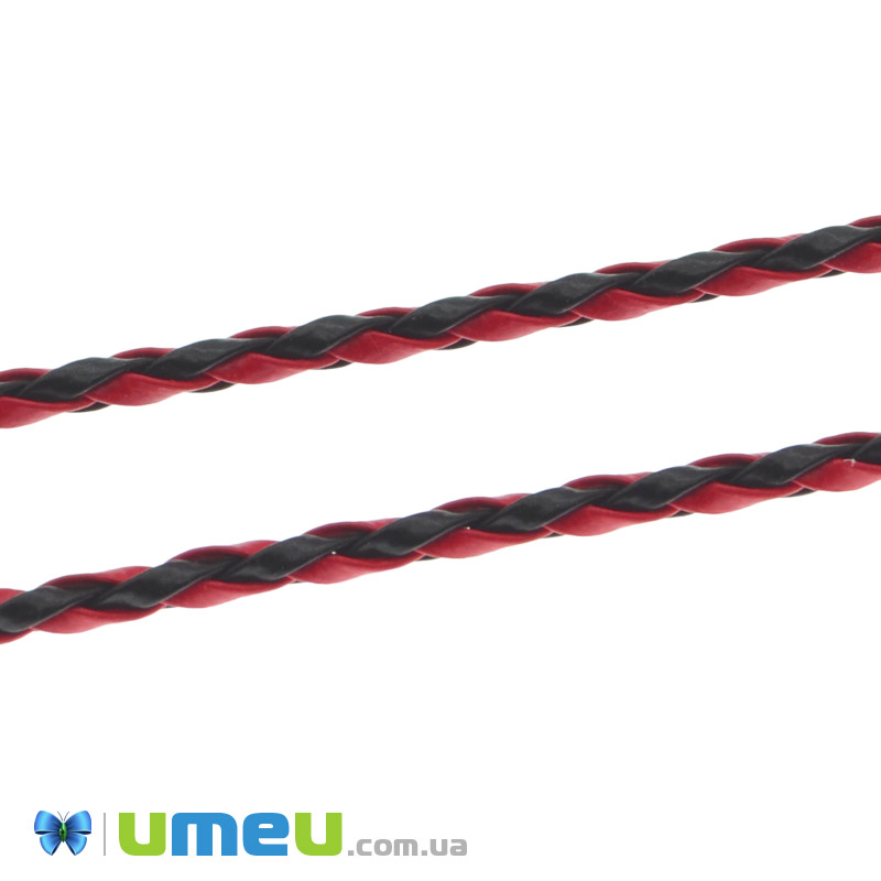 Плетенный искусственный кожаный шнур, Черно-красный, 3 мм (LEN-040130) / 1 м