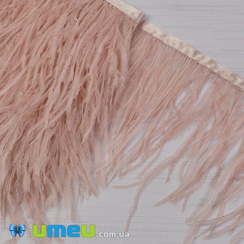 Перья страуса на ленте, 10-15 см, Пудровые (PER-040305) / 1 м