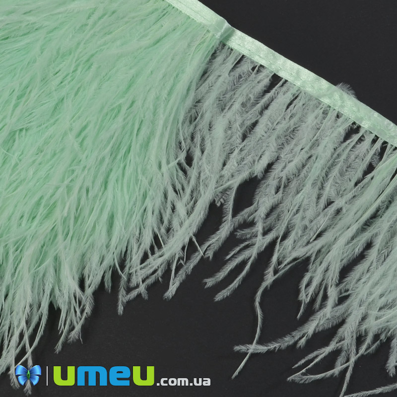 Перья страуса на ленте, 10-15 см, Мятные (PER-040306) / 1 м