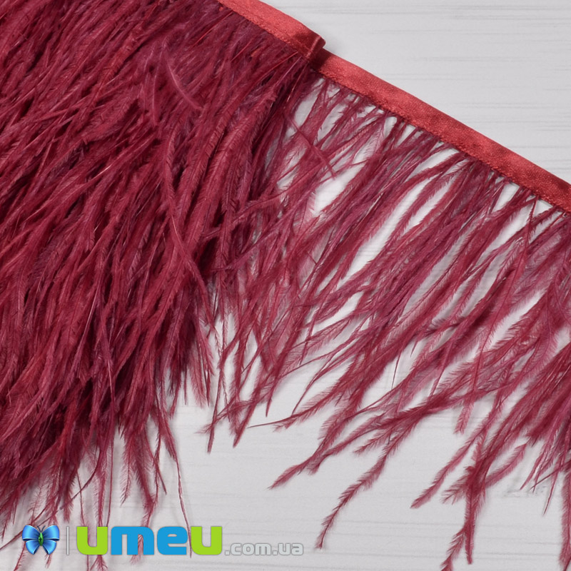 Перья страуса на ленте, 10-15 см, Марсала (PER-040311) / 1 м