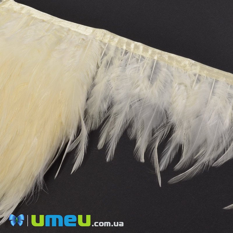 Перья петуха на ленте, 8-15 см, Кремовые (PER-040322) / 1 м