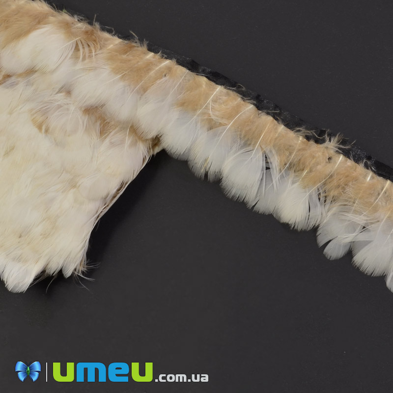 Перья фазана на ленте, 4-5 см, Бежевые натуральные (PER-040429) / 1 м