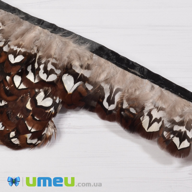 Перья фазана на ленте, 4-5 см, Коричневые натуральные (PER-040433) / 1 м
