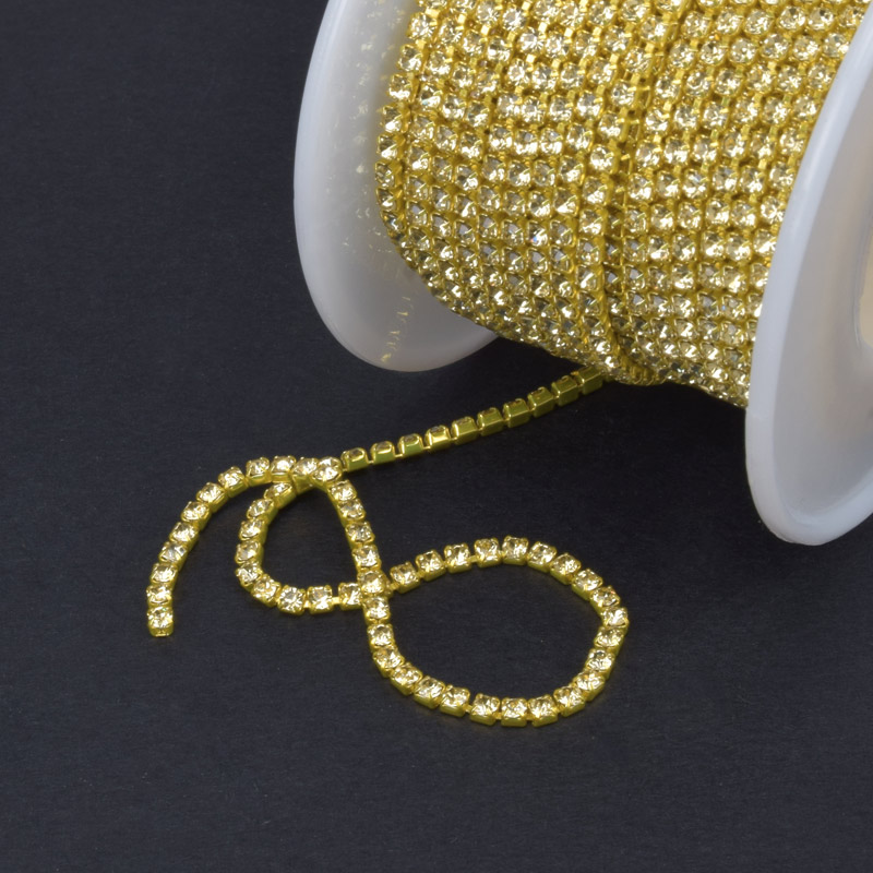 Стразовая цепь SS6 - 2,0 мм, Желтая, Стразы стеклянные желтые (ZEP-040479) / 1 м