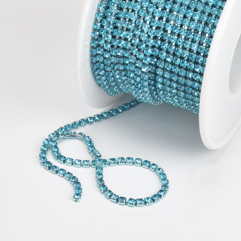 Стразовая цепь SS6 - 2,0 мм, Голубая, Стразы стеклянные голубые (ZEP-040480) / 1 м