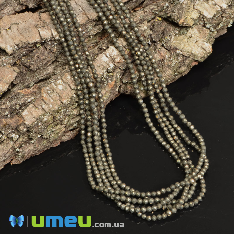Бусины Пирит, 2,5 мм, Круглые граненые (BUS-040885) / 1 низка