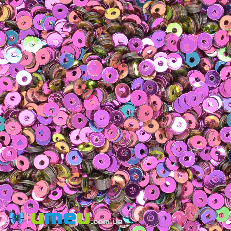 Пайетки Индия круглые плоские, 3 мм, Малиновые АВ (PAI-041797) / 1 уп (5 г)