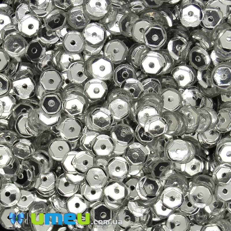 Пайетки Индия круглые граненые, 5 мм, Серебристые (PAI-041816) / 1 уп (5 г)