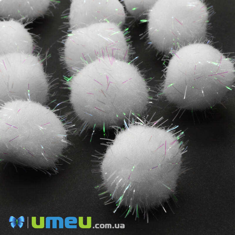 Помпоны с люрексом 2,5 см, Белые (DIF-042622) / 1 уп (10 шт)