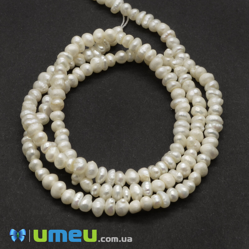 Бусина натуральный камень Жемчуг речной молочный, 2-3 мм (BUS-042809) / 1 низка